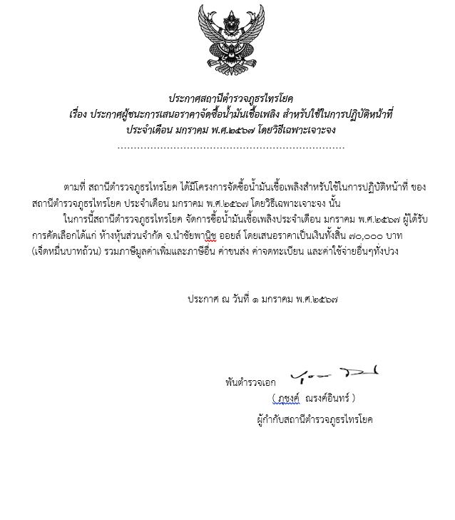 ประกาศจัดซื้อจัดจ้าง สภ.ไทรโยค มกราคม 2567