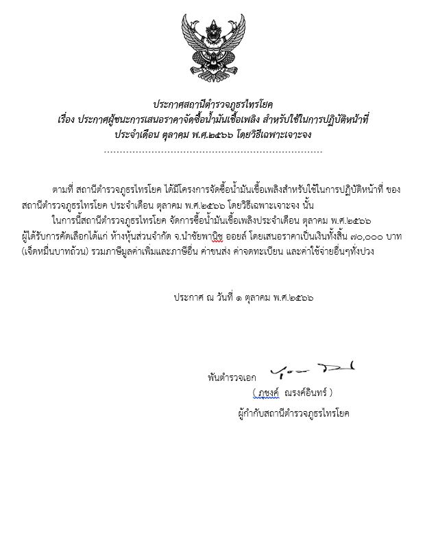 ประกาศจัดซื้อจัดจ้าง สภ.ไทรโยค ตุลาคม 2566
