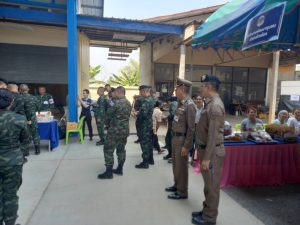 29 ก.พ.2567 เวลา 10.00น.พ.ต.อ.ภุชงค์ ณรงค์อินทร์ ผกก.สภ.ไทรโยคพร้อมด้วยข้าราชการตำรวจ สภ.ไทรโยคดูแลรักษาความปลอดภัยให้กับ นายสุทิน คลังแสง รัฐมนตรีว่าการกลาโหม มามอบเอกสารสิทธิทำกินในทีราชพัสดุ ณ.เทศบาลตำบลไทรโยค